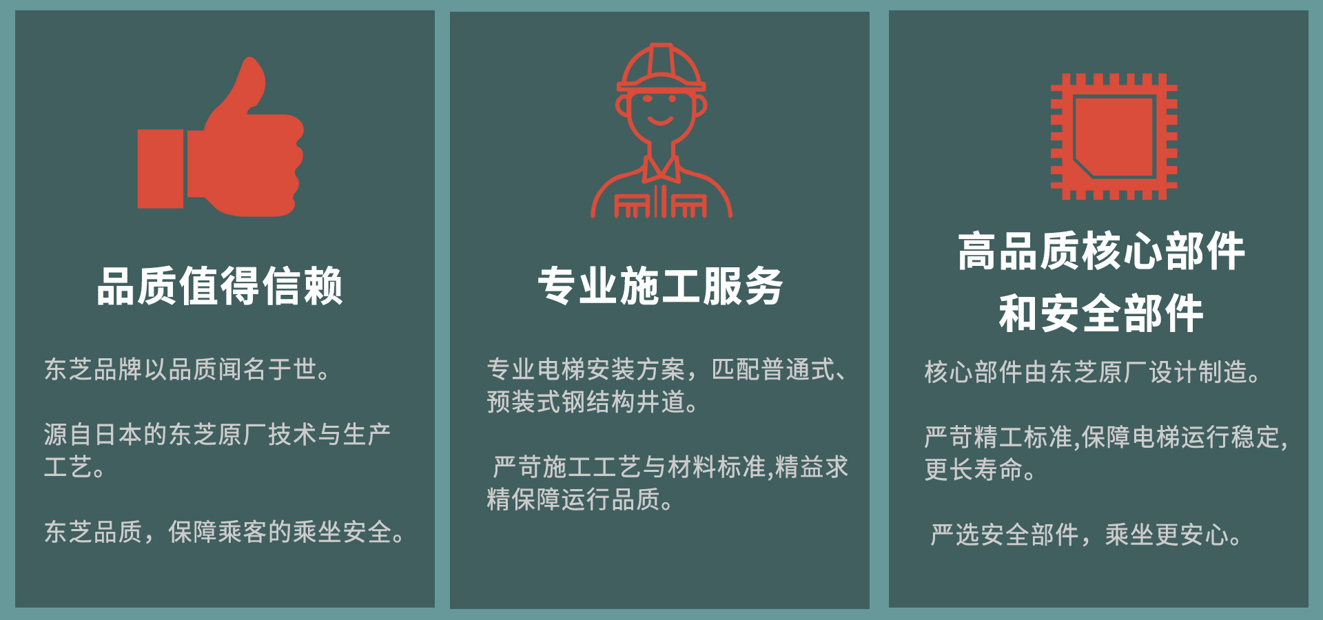舊樓加裝電梯選東芝選放心,以東芝品質守護安心乘降。